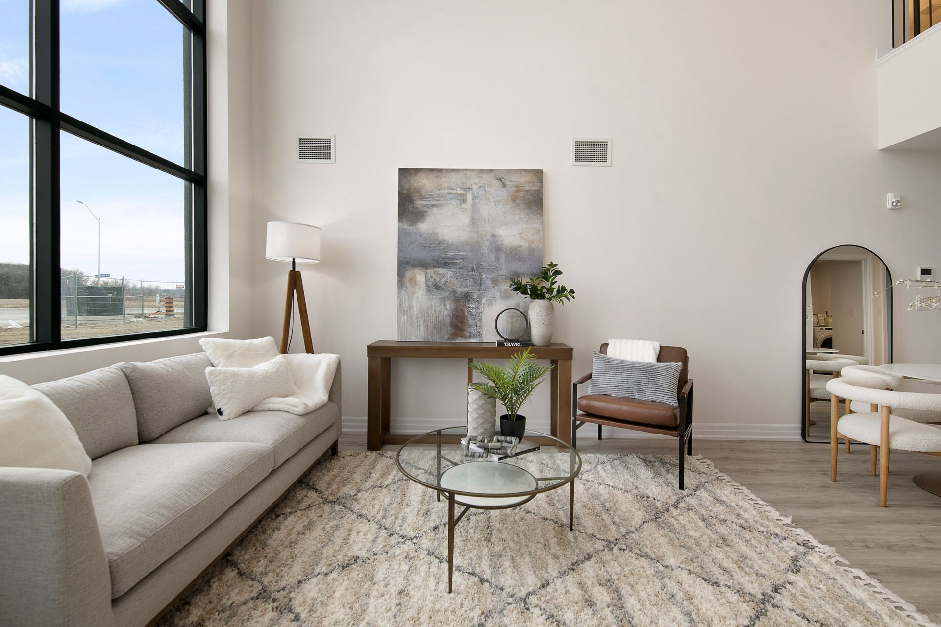 All renderings and illustrations are merely artist concepts and are for illustration purposes only. All are subject to change at the sole discretion of the developer and the purchaser agrees to accept any of such changes. All plans are not drawn to scale and are subject to architectural reviews and revisions by municipal authorities. Suites are sold unfurnished. All materials, specifications, floorplans, details, stated areas and dimensions, if any, are approximate, and are subject to change without notice in order to comply with municipal regulations, site conditions, architectural or structural requirements, supplies by vendor, as well as normal variances during construction. Dimensions stated on the plans may vary with the actual space. Patio, garden and balcony area where applicable are shown for display purposes only. The size and locations are subject to change without notice. The furniture and kitchen displayed are for illustration purposes only. The size, type and locations of windows are subject to change and will vary per floor. (E. & O.E.).
